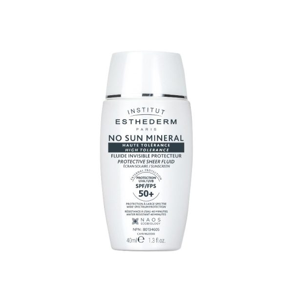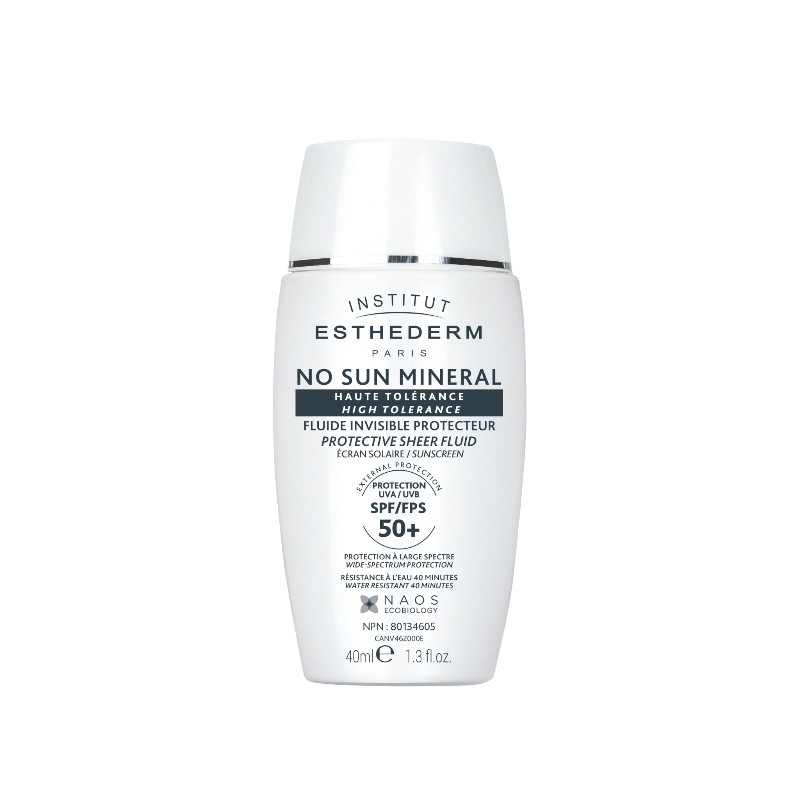 NO SUN MINERAL HAUTE TOLERANCE Fluide Invisible Protecteur – TRÈS HAUTE PROTECTION Haute tolérance grâce à un seul filtre minéral Texture fluide ultralégère Zéro trace blanche – fini nude